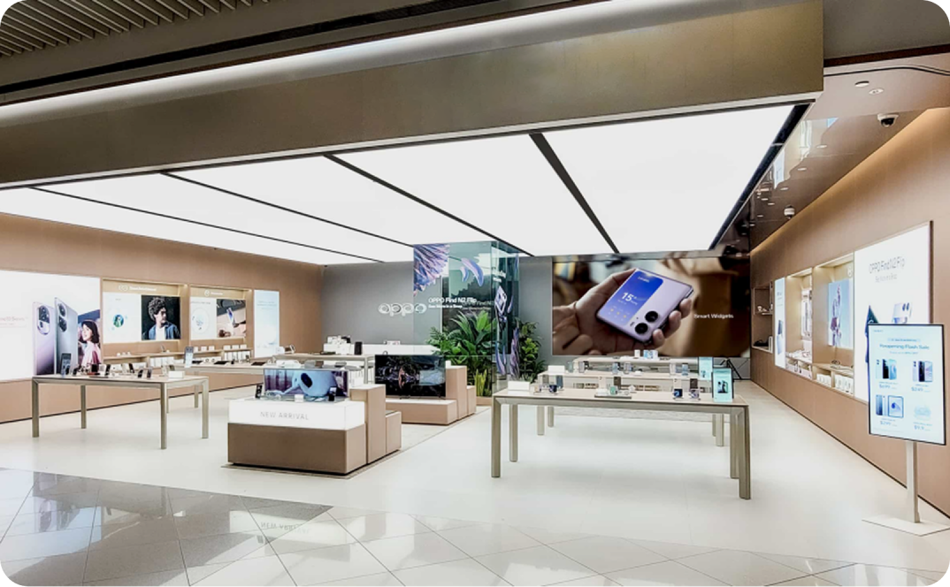 Customers consult store guides about phones and installment options, complete a real-time credit check, choose a suitable plan, sign the electronic contract, receive their phone once funds are disbursed, and enjoy ongoing support with repayment reminders and customer service.
